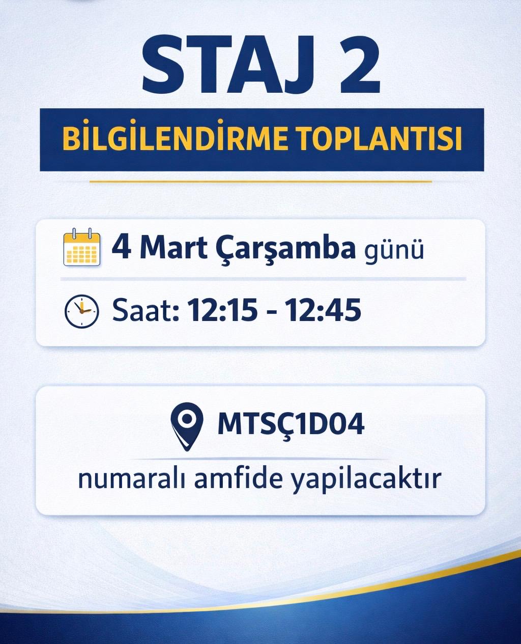 Staj-1, Staj-2 ve Staj-3 Bilgilendirme Toplantıları
